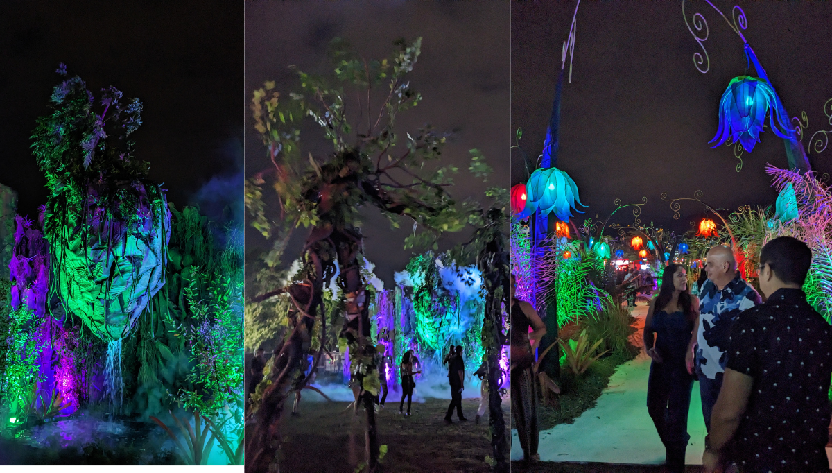 The decor in the fete made me feel like I was in a lavish Nordic enchanted fairyland. The entrance was a magical elvish entrance surrounded by stone walls, illuminated with green and purple lights.