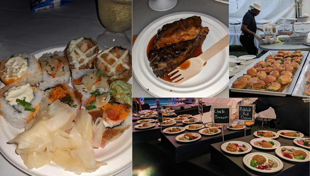 When I got in, I went straight for the food. There were doubles, roti, wild meat, deer, oxtail, traditional Indian food, traditional fast food, calamari, pork ribs, lamb, crab and dumpling, fried chicken, fried shrimp, sushi, pulled pork, pepper pork, pork in many beautiful forms, steak, kebabs, Singapore noodles, and more. I really could not think of a single food that was not there on the grounds.